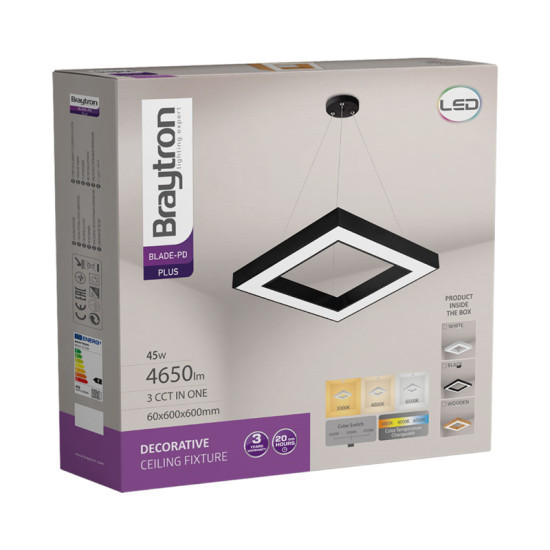 BRAYTRON BLADE 45W mennyezeti lámpa 3IN1 IP20 függő négyzet fekete távirányítós